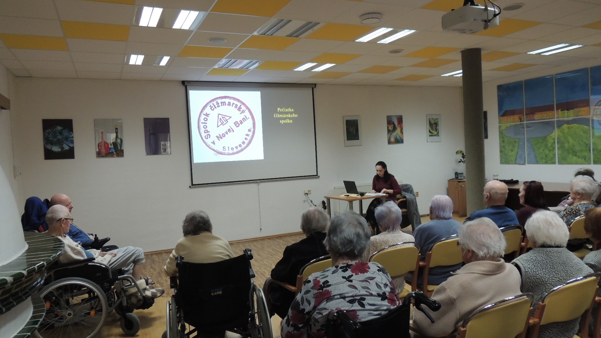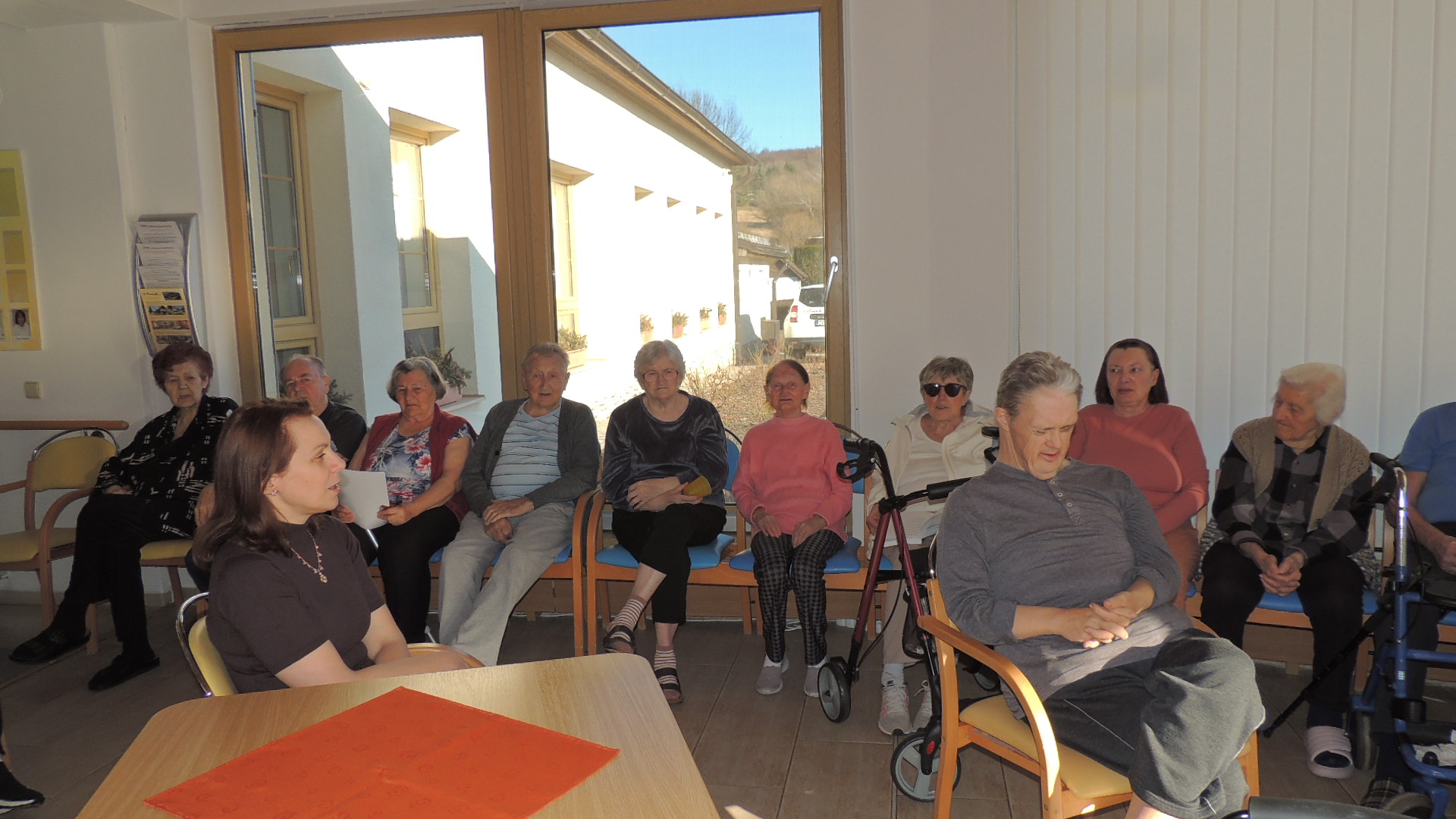 Marcové  aktivizácie: Kognitívna aktivizácia, Ľahké cvičenia,  pracovná aktivizácia – „jarné tvorenie“ –  oslavy menín a narodenín, Prednáška pani Mgr. Hany Zduchovej na tému: Po stopách Novobanských remesiel, Zločiny a tresty v Novej Bani,  REMINISCENCIA: “ Cestou – necestou …, Ako to bolo kedysi: Rádio, televízia, kino